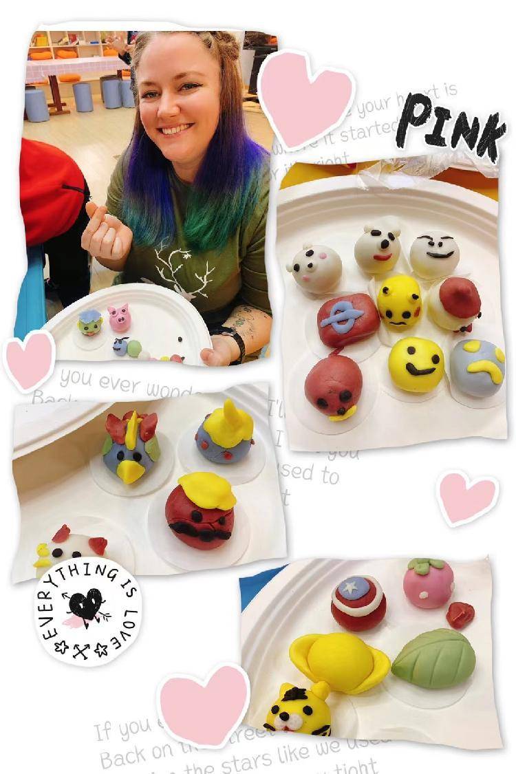 勤芸还辅导过一大群小朋友学做汤圆,孩子们的创造才能很强。她描述说,孩子们做汤圆,就像是捏橡皮泥,他们的配色和造型都很斗胆,比方翅膀可以长在人的头上,白极熊可以长黑色的大胡子。
