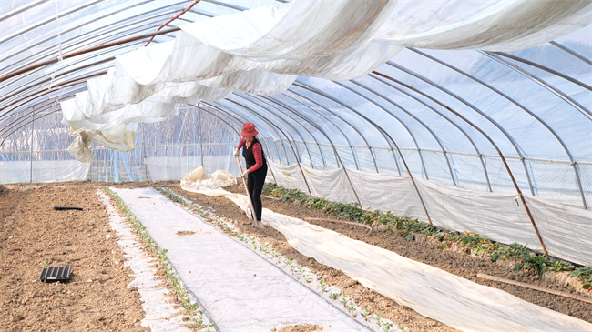 在忙碌的田间地头,也有年轻的身影。1991年出生的盛海清从2018年开始跟父母一起下地种田。他家有12亩地,之前地里种的是草莓,这段时间一直在忙着翻新土地,等着播种西瓜苗。“这段时间比较忙,得先把每个大棚里的土地翻新下,修整下田面,然后开始忙着栽瓜苗。”