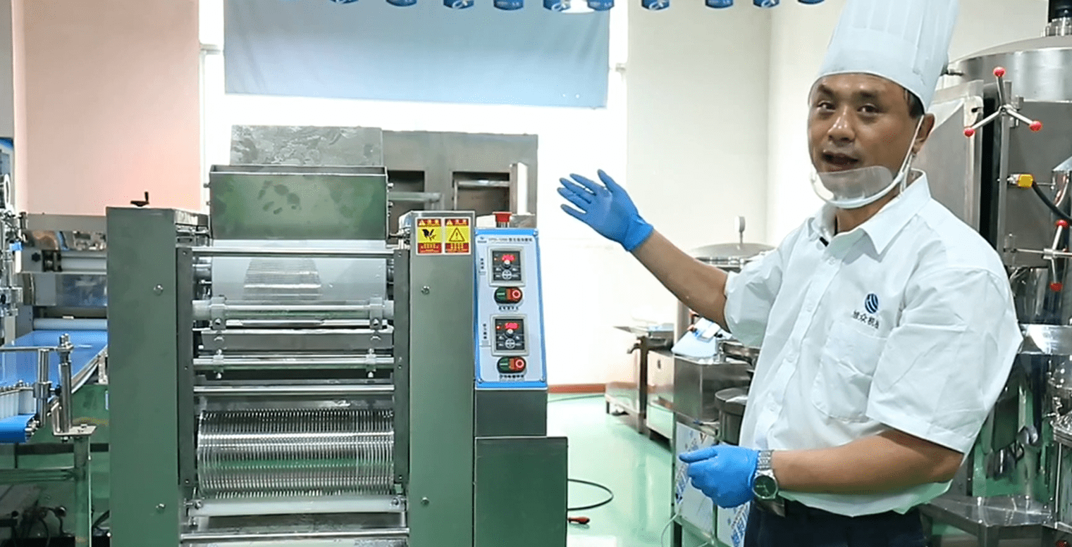 首先上场的这台汤圆机,是一台无馅的全自动汤圆机,每小时能生产1200个汤圆,效率非常的高。